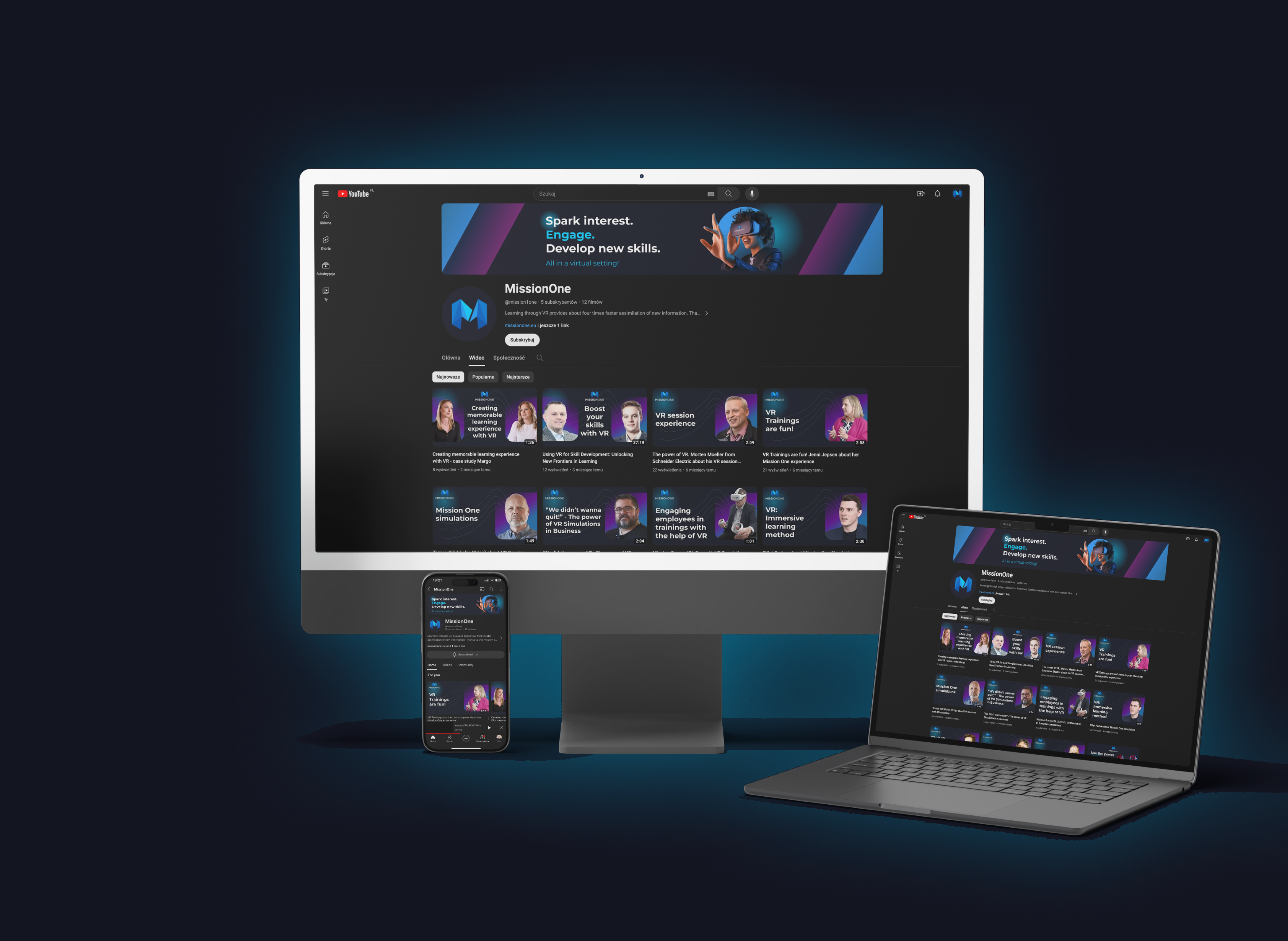 Współpracę z Mission One rozpoczęliśmy od stworzenia nowej identyfikacji wizualnej oraz przejrzystej strony internetowej, która w pełni odzwierciedliła innowacyjny charakter symulacji VR. Zadbaliśmy zarówno o UX/UI design strony, jak i szczegółowe treści, które precyzyjnie przedstawiają ofertę klienta.